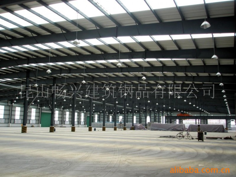 昆山畅兴建筑钢品有限公司坐落在江苏省苏州市(昆山)玉山镇吴淞江工业园西区(大道),中华园西路2028号,公司集各类钢结构,彩色压型钢板,防腐防火等项目的设计、制作、安装、施工、运输于一体,拥有一流全套的机械加工检测设备(数控/多头火焰直条切割机、H型钢组立机、龙门式自动焊接机、冀缘矫正机、辊道通过式抛丸清理机、16m/m液压轧式剪板机、NBC逆盘式CO2气体保护焊机、无损探伤仪等),年生产钢结构能力为6000吨。本公司已先后为多家著名钢结构行业(昆山华胤——台资、昆山中钢——台资、上海美联——美资、浦项制铁(世界500强)——韩资等加工并承接工程安装,有国外出口、施工经验。具国家建设施工钢结构专业资质。